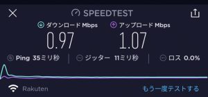 スマホ計測こそ最初は楽天回線エリアらしい速度が出ていたのですが、最初の数回のみにとどまり、あとはパートナーエリアとしての速度を維持していました。