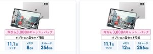 NEC Direct限定モデル(PC-TAB11301)が85,580円(8GB+256GB)