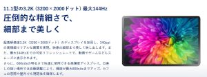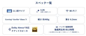 【画面サイズ】11.1インチ3.2K(3,200×2,000)・ワイドLED広視野角ディスプレイ(Dolby Vision対応・ピーク輝度800nits・Gorila Glass 7i・リフレッシュレート最大144Hz
