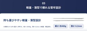 【本体サイズ】幅255.52×高さ165.84×薄さ6.2(ミリ)・重さ約460(+2)グラム