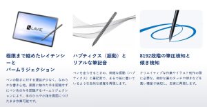スタイラスペンも「デジタルペン」という名称で記載されており、国内向けモデルとして情報が整理されています。
